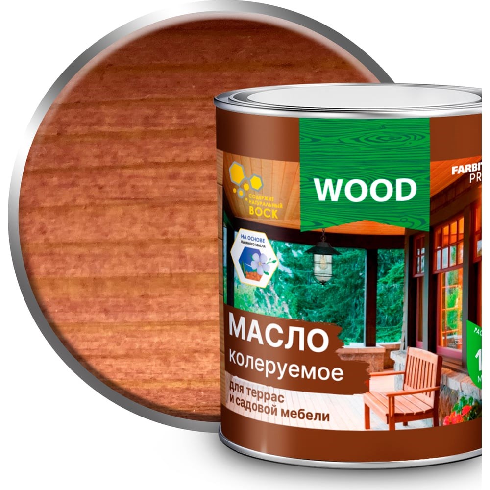 Колеруемое масло для террас и садовой мебели FARBITEX предназначено для декоративной отделки и защиты от атмосферных воздействий деревянных поверхностей.Продукт используют для обработки террас, платформ, лестниц, садовой мебели и прочих крупных (горизонтальных) деревянных оснований. Подходит для нанесения на ранее промасленные мягкие породы древесины (сосна, ель, кедр, лиственница) и древесины с глубокой пропиткой.Отличительной особенностью является то, что состав глубоко проникает в структуру материала, не образуя на нем заметной сплошной пленки, благодаря чему покрытие со временем не отшелушивается и не требует предварительного шлифования перед обновлением лакокрасочного слоя, а входящий в состав воск обеспечивает дополнительную защиту дереву.- надежно защищает древесину от ультрафиолетового излучения и атмосферных осадков; - отлично впитывается, не образуя заметной пленки; - обладает хорошими водоотталкивающими свойствами; - препятствует проникновению влаги внутрь обрабатываемой поверхности; - содержит антисептики, предотвращает распространение синевы и плесени."Расход зависит от впитывающей способности древесины и составляет 80 – 150 мл/м².