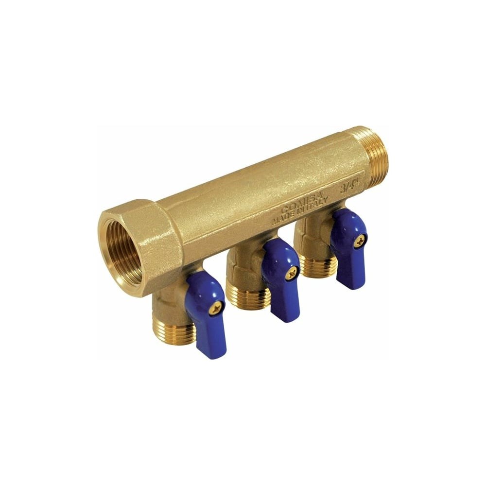 Коллектор с шаровыми кранами Comisa 4 выхода, 3/4-1/2 нар 8820174 для отопления и водоснабжения. Позволяет регулировать интенсивность потока рабочей среды. Внимание! Изображение товара отличается от реального, ориентируйтесь на технические характеристики.