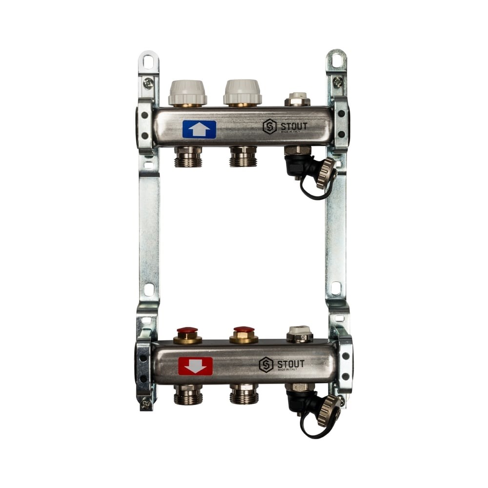 Коллектор из нержавеющей стали без расходомеров, с клапаном выпуска воздуха и сливом STOUT 2 выхода SMS-0932-000002 предназначен для подачи и регулировки теплоносителя. Каждая труба отопительной системы или теплого пола подключается к данному элементу, что дает возможно управлять каждым кольцом системы. Представляет собой надежный и долговечный элемент за счет: высокой пропускной способности; способности выдерживать давление до 10 бар; максимально выдерживаемой температуры теплоносителя до 100 °С; корпуса из нержавеющей стали; клапана выпуска воздуха и слива.