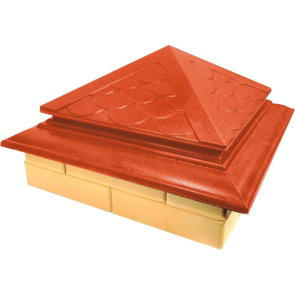 Колпак на столб забора ООО ТК "Титан" Тетто Элит Чешуя (513x513 мм; кирпич) 565621ЧКЭ 2х2 кирпича е только придаст столбам Вашего забора эстетичный и гармоничный вид, но и защитит основной материал столба от разрушающего воздействия окружающей среды. Классическая форма, уникальный рисунок и большой выбор цветов идеально подойдут к любому забору, а капельник не даст воде попадать на столбы. С колпаками Tetto Ваш забор будет защищен на долгие годы.
