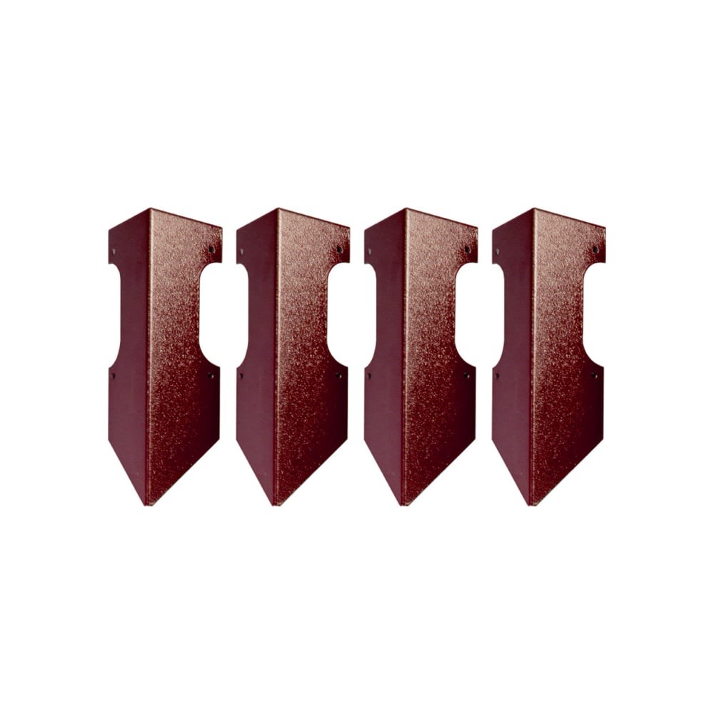 Колышки для деревянных грядок Delta-Park CB15-1 коричнево-красные, 4 шт.3003030 используется для изготовления грядок своими руками. Для бортов подойдут доски из деревьев любых пород, их толщина должна составлять 20-40 мм, а ширина 150 мм. Комплекта из четырех колышков достаточно для того, чтобы собрать грядку любой ширины и длины. Антикоррозийное покрытие продлевает срок службы изделия.