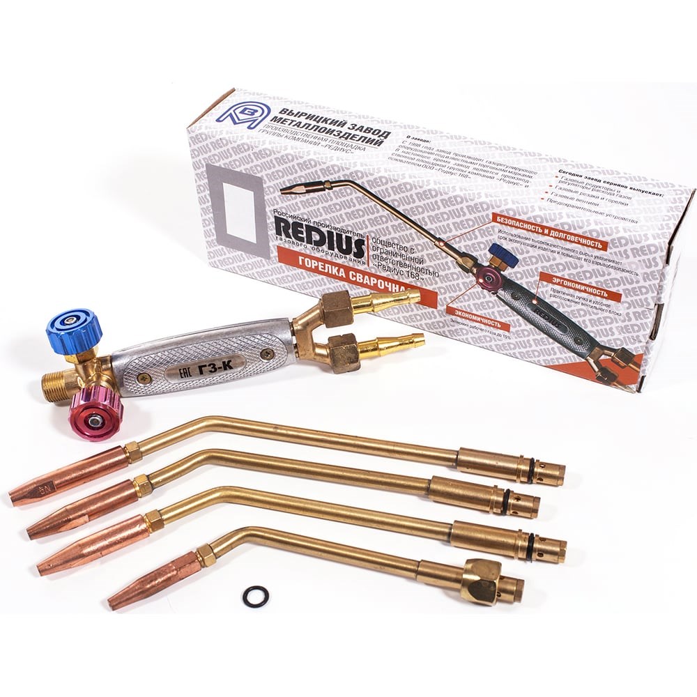 Горелка REDIUS Г3-К комбинированная нак. № 4, 5А / нак. 4, 5П 09302 широко используется в сфере производства для нагрева, а также пайки и плавления металлических деталей толщиной от 3 мм до 11 мм. Сменные инжекторы и наконечники расширяют возможности горелки. В качестве рабочего газа служит ацетилен либо пропан.