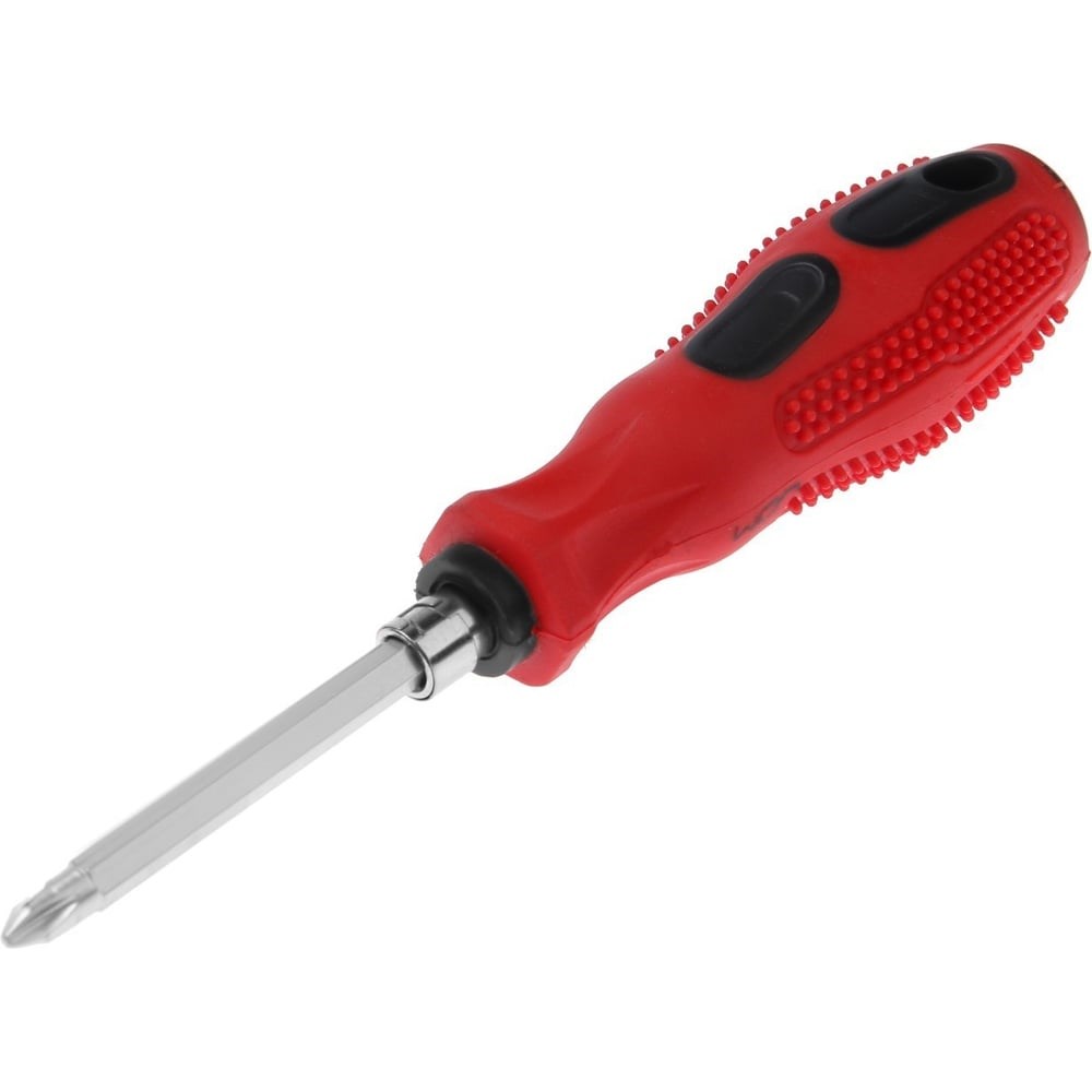 Отвёртка предназначена для монтажа и демонтажа резьбовых соединений. Инструмент изготовлен из прочного маталла и оснащён эргономичной рукояткой, которая обеспечивает удобный хват. Особенность изделия в том, что это две отвёртки в одной — крестовая и шлицевая.