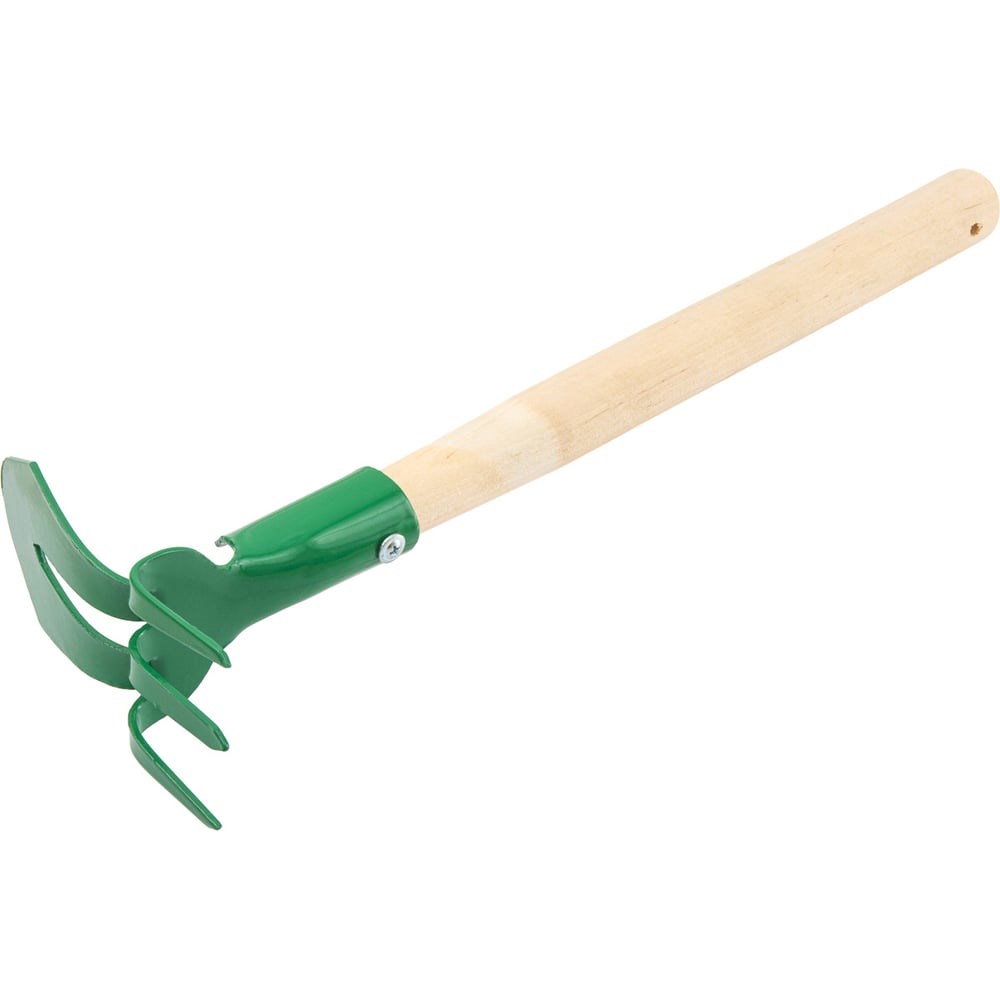 Комбинированная стальная мотыжка КЭС 65x150x435 мм, деревянная рукоятка 21020023 применяется для прополки, рыхления почвы в ограниченном пространстве цветника, теплицы или узких междурядий, а также для нарезания борозд при посеве семян. Изготовлены из конструкционной углеродистой стали обыкновенного качества. Порошковое покрытие защищает рабочую часть инструмента от коррозии. Деревянная рукоятка двойной шлифовки делает работу комфортной. Толщина полотна - 2 мм.