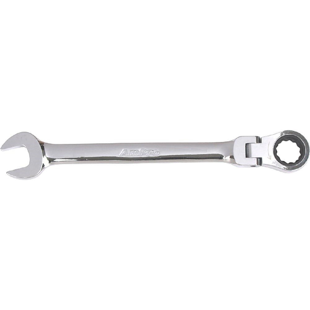 Комбинированный ключ AmPro c механизмом свободного хода, 21мм T42321 изготовлен из прочной инструментальной хром-ванадиевой стали специального сплава. Имеет зеркальную полировку. Накидная 12-гранная головка расположена на шарнире, который меняет положение от 0 до 180°. Трещоточный механизм имеет 72 зуба, угол поворота 5°. Подходит для работы с труднодоступными резьбовыми соединениями в условиях ограниченного пространства, без возможности перестановки ключа благодаря функции трещотки.