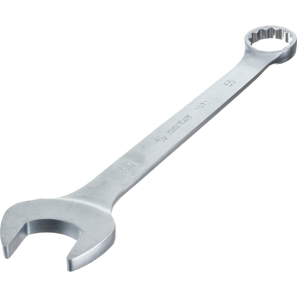 Комбинированный ключ KING TONY 55 мм 1071-55 используется в автосервисах, автомастерских и т.д. Инструментальная легированная хром-ванадиевая сталь специального сплава увеличивает рабочий ресурс инструмента. Хромированное покрытие защищает от коррозии. Наличие двух головок разного профиля расширяют сферу применения. Благодаря специальному изгибу в 15 градусов, можно работать в ограниченном пространстве.