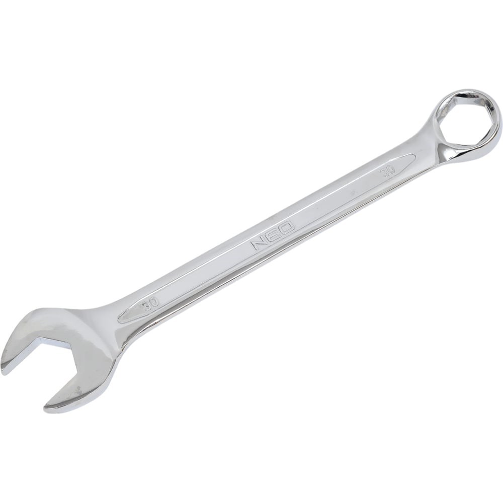 Комбинированный ключ NEO HEX/V 30 x 340 мм 09-430 изготовлен из прочной хромованадиевой стали. Имеет открытый профилированный зев, обеспечивающий целых четыре точки соприкосновения с крепежом. Благодаря четырем точкам соприкосновения можно прикладывать большую силу без риска повредить гайку или винт. Полированная поверхность ключа значительно упрощает его очистку.