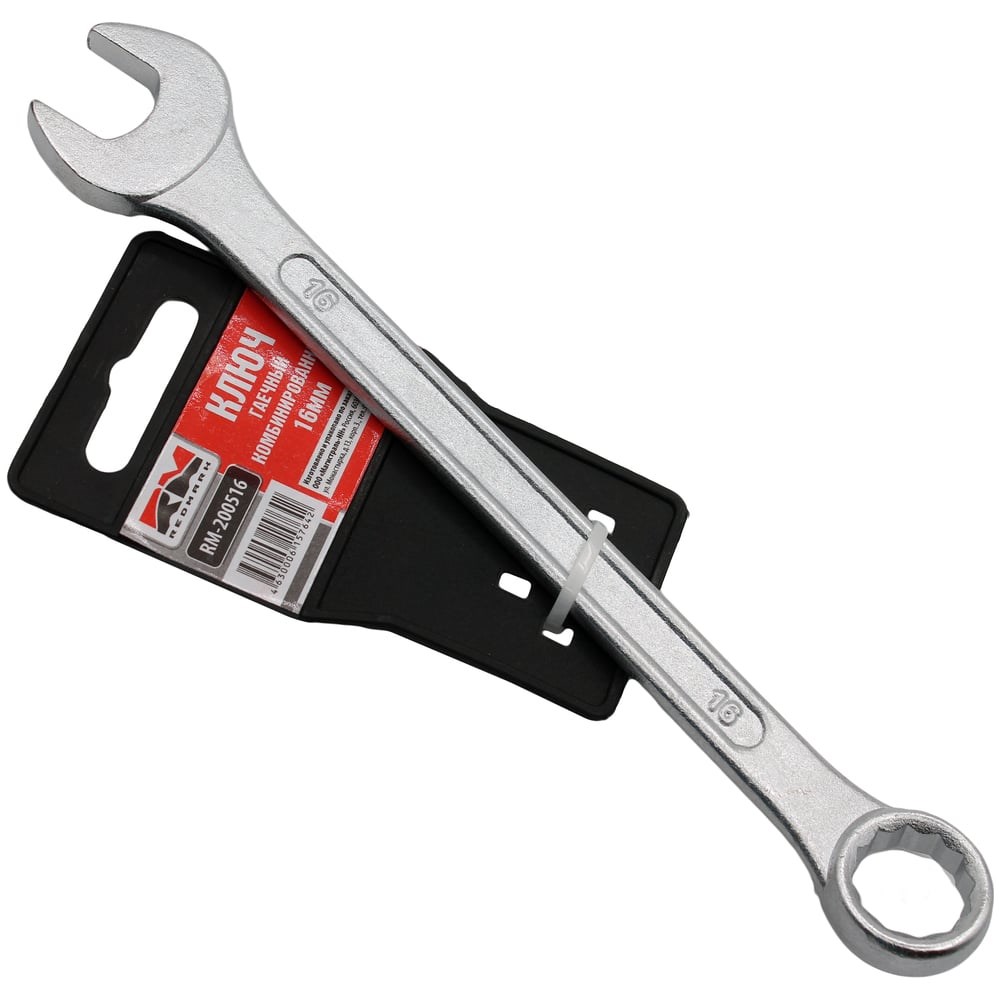 Гаечный ключ REDMARK комбинированный 16х16 мм RM200516 представляет собой инструмент для монтажа и демонтажа крепежных элементов. Конструкция ключа включает в себя прочное тело с ребрами жесткости, а также увеличеные размеры основания.Он выполнен из прочной стали - не деформируется при вращении. Также не подвержен коррозии.