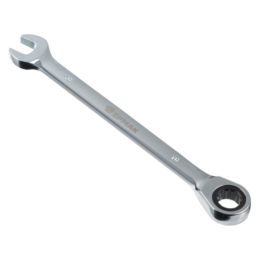 Ключ комбинированный трещоточный ЕРМАК 10 мм изготовлен из стали высокого качества с защитным покрытием от коррозии. Трещоточный механизм позволяет с комфортом пользоваться инструментом в ограниченном пространстве, обеспечивая высокий крутящий момент. Необходимый инструмент в коллекции домашнего мастера.