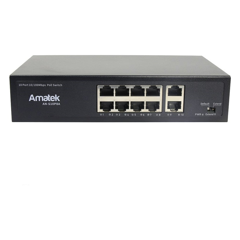 Дополнительная техническая информация коммутатора PoE Amatek AN-S10P8A 7000656: 8 портов 10/100 Мбит/с с поддержкой PoE+ 30Вт (IEEE 802.3 at/af), автосогласованием и авто-MDI/MDIX 2 порта 10/100 Мбит/с с автосогласованием и авто-MDI/MDIX Поддержка аппаратного VLAN обеспечивает разграничение доступа к данным, защиту от сетевых штормов. Поддержка стандарта управления потоком IEEE 802.3x Flow control для полнодуплексного режима предотвращает потерю данных в буфере Коммутационная способность 2,4 Гбит/с 4k записи в таблице MAC-адресов Метод коммутации – хранение и передача (Store and Forward) Поддержка Auto-MDI/MDIX автоматически определяет типа подключенного кабеля (прямой/перекрещенный) и исключает ошибки неправильного выбора соединительных кабелей между оборудованием Функция автосогласования на каждом порту определяет скорость соединения сетевого устройства (10 или 100 Мбит/с) и производит настройку совместимости и оптимального режима работы.