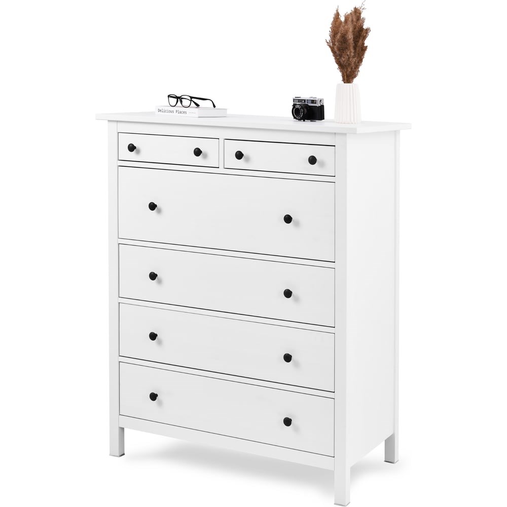 Комод КЫМОР с шестью ящиками станет отличным дополнением вашего интерьера. Этот комод прекрасно подойдет для хранения одежды, белья и других вещей, обеспечивая порядок и удобство в вашем доме. Комод выполнен из массива сосны, который ценится за свою прочность, долговечность и экологичность. Покрытие выполнено с использованием красителей на водной основе и лака на основе акриловых смол с УФ-отверждением. В комоде предусмотрено шесть ящиков на роликовых направляющих, которые изнутри не покрашены, как основная часть, что придает им естественный вид. Имеет высоту ножек 11 см, что облегчает уборку Максимальная нагрузка на верхние ящики - 10 кг. Максимальная нагрузка на средние и нижние ящики - 20 кг.