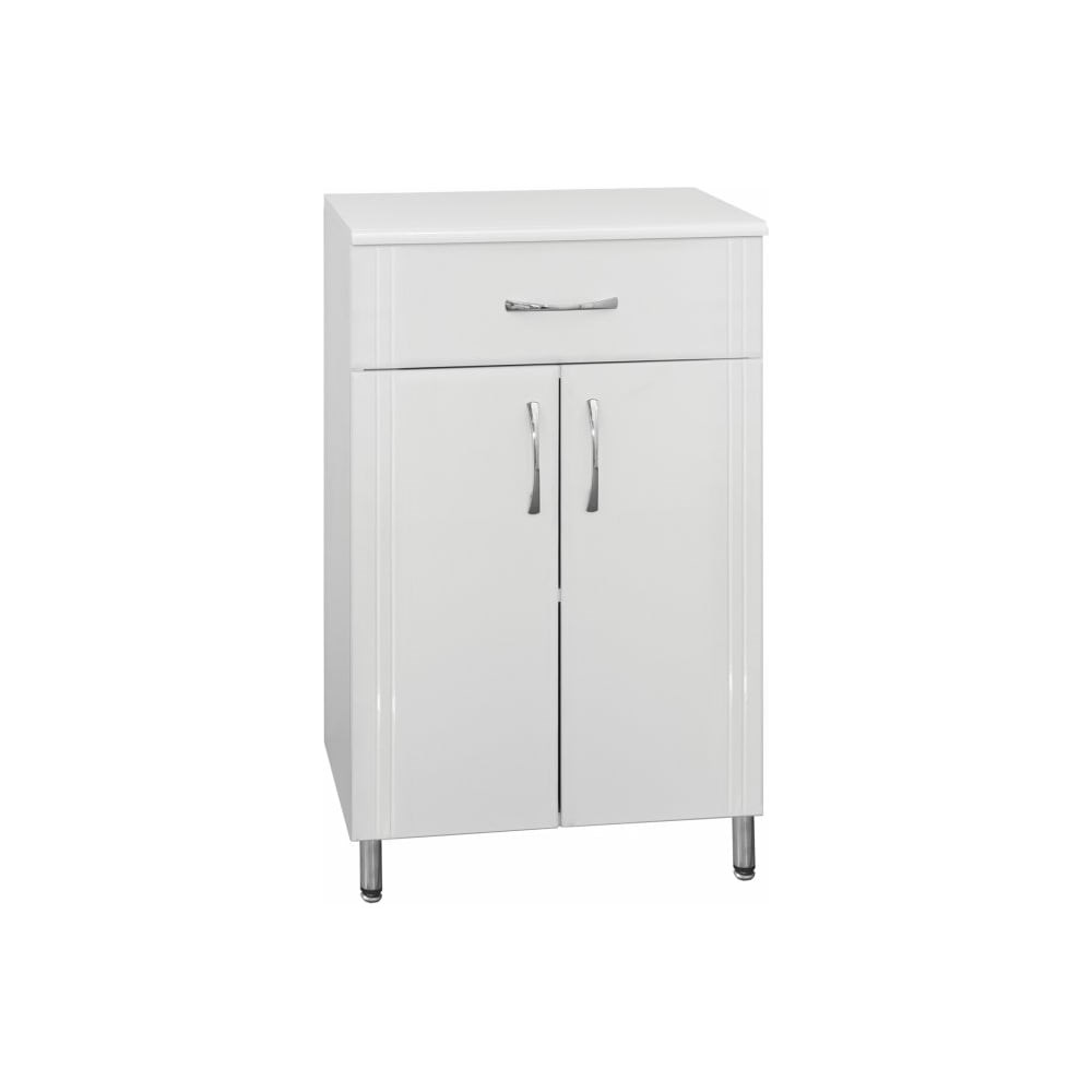 Комод Style Line ТН 600 (1 ящ.) ЛС-00000230 в базовом белом цвете, представляет собой удобную и функциональную тумбу, оборудованную широким выдвижным ящиком и внутренним отделением с вкладной полкой. Изделие имеет достаточно простой дизайн и предусматривает в качестве декора линейную фрезеровку по бокам. Внешний облик завершают аккуратные ручки в форме «бабочка», они покрыты глянцевым хромированным покрытием, не подверженному быстрому старению во влажной среде. Петли с доводчиком на всех фасадах Направляющие полного выдвиджения Hettich на ящике Декор "Луино" - ламинация внутренней стороны изделия Ручка "Бабочка" с хромированным покрытием Влагостойкие материалы