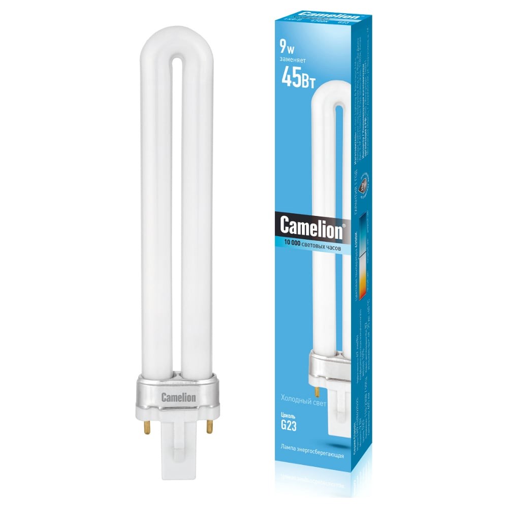 Люминесцентная лампа 9Вт LH 9-U/842/G23 Camelion, 2288 чаще всего используются в душевых и ванных комнатах. Мощность 9 Вт. Обладает высокой светоотдачей, без каких либо недостатков. При включении свет не мерцает. Позволяет экономить электроэнергию до 80%.