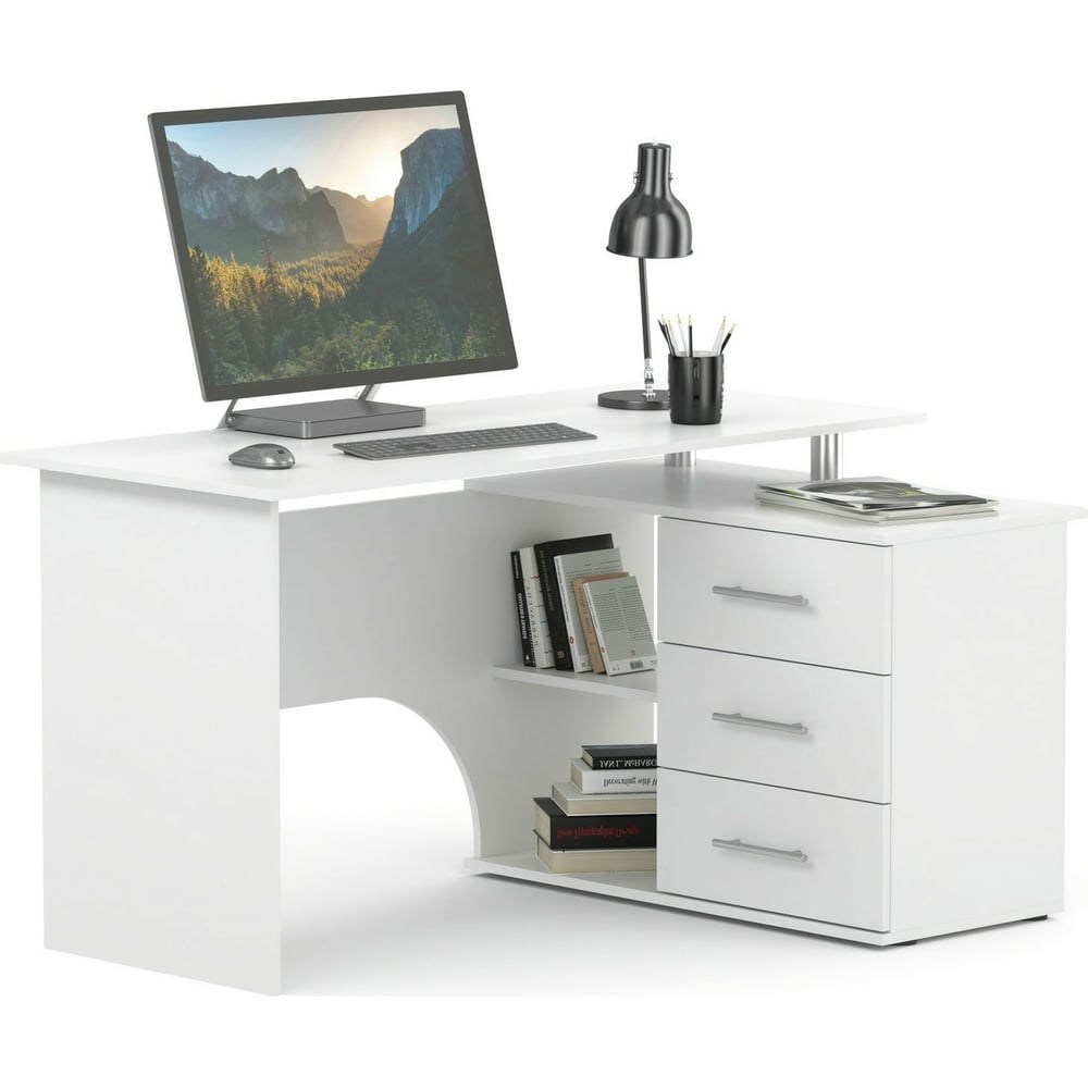 Компьютерный стол СОКОЛ правый белый КСТ-09 00-00010946 — идеальное решение для организации рабочего процесса как в домашнем кабинете, так и в офисной обстановке. Продуманная конструкция подразумевает две поверхности для размещения техники и подручных предметов, несколько открытых ниш и три выдвижных ящика для организации системы хранения книг, бумаг и канцелярских принадлежностей. Характеристики: Материал: ЛДСП 16 мм. Края обработаны кромкой ПВХ 0,4 и 2 мм. Тип направляющих: роликовые 350 мм. Максимальная нагрузка на столешницу, поверхность тумбы и нижнюю полку: 20 кг. Максимальная нагрузка на ящик и верхнюю полку: 5 кг. Ориентация сборки: правосторонняя (определяется по расположению тумбы).