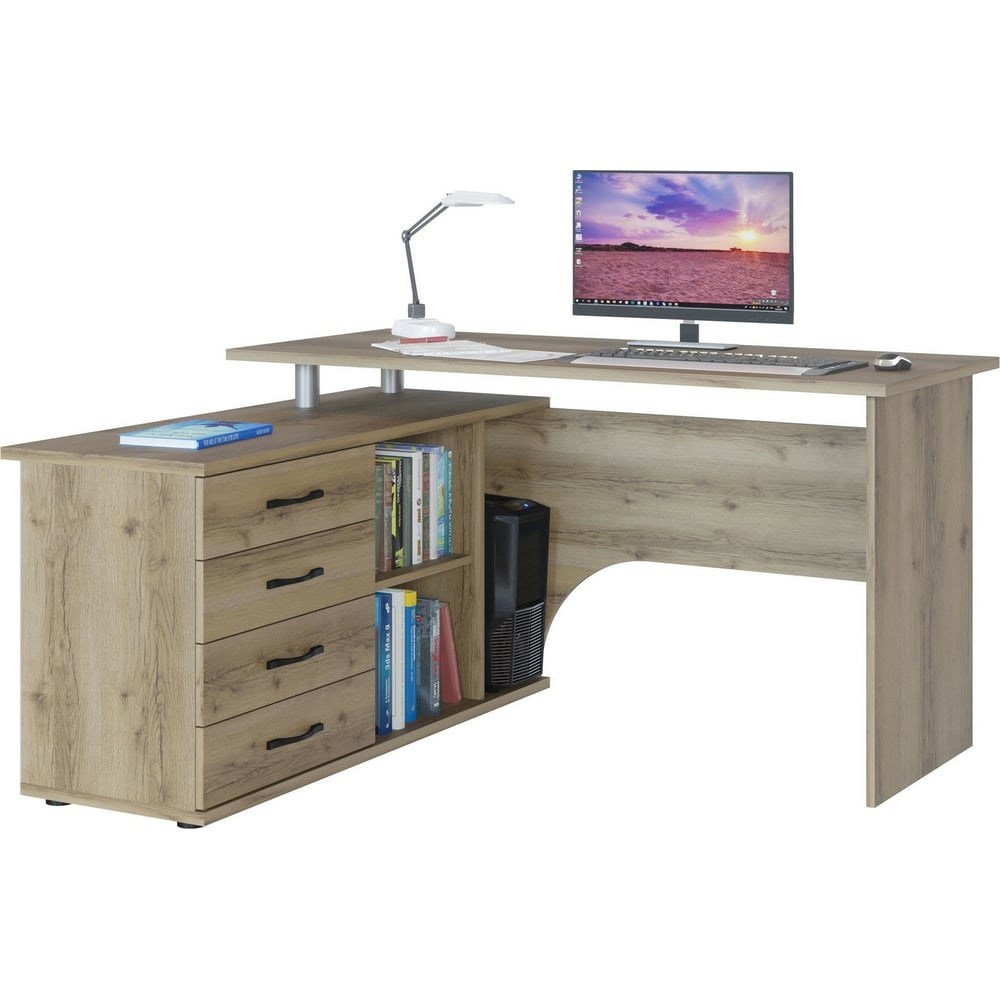 Угловой компьютерный стол СОКОЛ Стол компьютерный Левый Дуб делано КСТ-109Л 00-00009445 с двумя рабочими поверхностями для организации рабочей зоны дома и в офисе. Основная столешница имеет ширину 1400 мм, позволяя разместить компьютер и рабочие материалы. На малой столешнице — 1200 мм, удобно держать под рукой книги, папки, канцелярию.Преимущества:функциональный — две рабочие поверхности, удобно держать все необходимое под рукой;вместительный — оборудован тумбой с 4 ящиками, 2 просторными полками и нишей под системный блок;угловая конструкция — экономит пространство, есть возможность выбора нужной ориентации стола (левый или правый угол);подходит для зонирования — задняя стенка выполнена из ЛДСП в цвете корпуса, можно ставить не у стены.Стол оборудован тумбой с четырьмя ящиками на роликовых направляющих, открытыми полками и нишей под системный блок. Такая модель компьютерного стола позволяет организовать функциональную рабочую зону как в домашнем кабинете, так и в офисе.Габариты ящиков (ВхШхГ): 444 х 334 х 81 мм. Размер ниши под системный блок (ВхШхГ) — 565 х 221 х 400 мм.Обратите внимание! Стол может быть с правым или левым углом (определяется по расположению тумбы). При оформлении заказа нужно выбрать необходимую ориентацию.