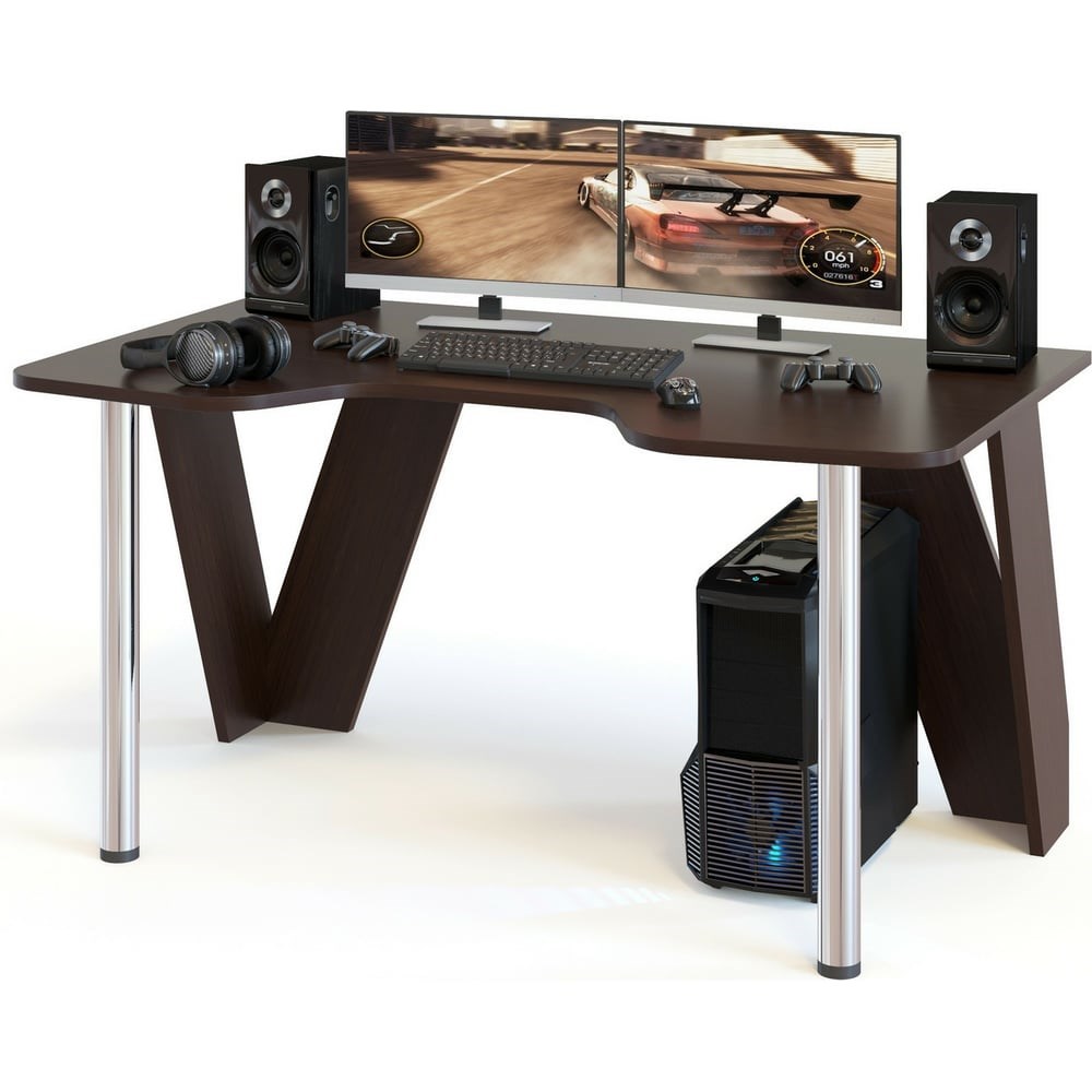 Компьютерный стол СОКОЛ венге КСТ-116 КСТ116В5 имеет интересный стиль исполнения. Металлические опоры модели и геометрия форм идеально дополнят собой современный интерьер. Характеристики: Материал: ЛДСП 22 мм с кромкой ПВХ 0,4 и 2 мм. Максимальная нагрузка: 50 кг. Тип опор: регулируемые по высоте.