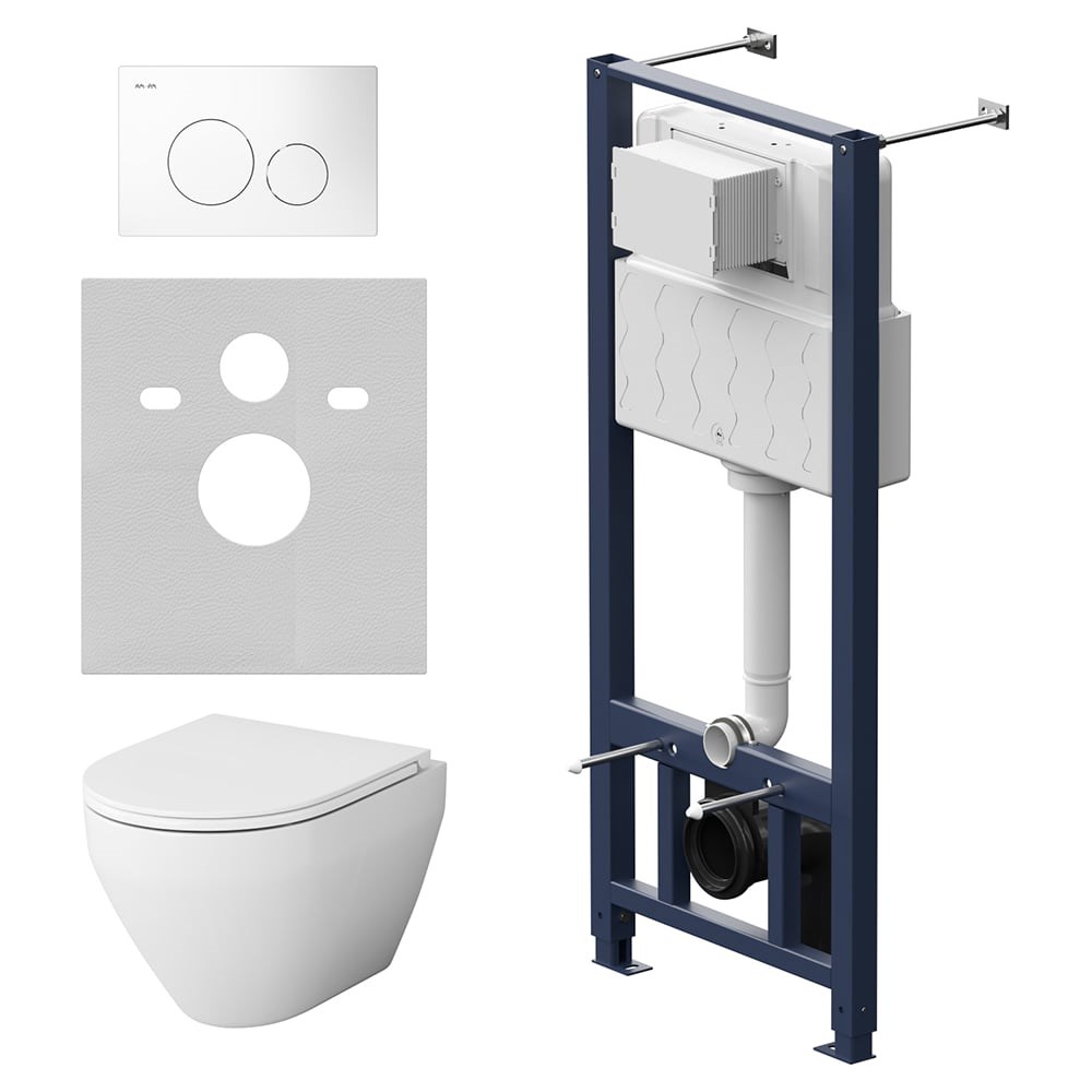 Полностью готовый к установке комплект: система инсталляции с клавишей подвесной унитаз сиденьем. Не разборная рама из стального профиля выдерживает нагрузку до 400 кг. Полностью изолированный бачок с качественной двухрежимной смывной арматурой - комфортное использование благодаря низкому уровню шума - менее 20 дБ. Укомплектован пневматической клавишей в белом цвете. В комплекте все необходимые патрубки и крепления, а также прокладка между унитазом и стеной - звукоизоляция. Выверенный геометрический дизайн унитаза Spirit V2.0 - идеально ровные поверхности с четкими гранями - отмечен премиями iF Design и Good Design. FlashClean - новое поколение безободковых унитазов без использования пластика: 100% гигиеничности 0% брызг. Компактное дизайнерское решение: идеально впишется в санузел любого размера благодаря проекции 49 см. Полностью скрытые крепления и скрытый фановый выход обеспечат эстетическую чистоту дизайна и лёгкость в уходе за керамикой. В комплекте быстросъемное сиденье из дюропласта с механизмом плавного закрывания. Материал сиденья дюропласт устойчивый к появлению царапин в сочетании с креплениями из нержавеющей гарантируют долговечность сиденья. Механизм плавного опускания рассчитанный на 100 000 закрываний и быстрого снятия - комфорт в использовании и легкость в уходе за сиденьем и керамикой.