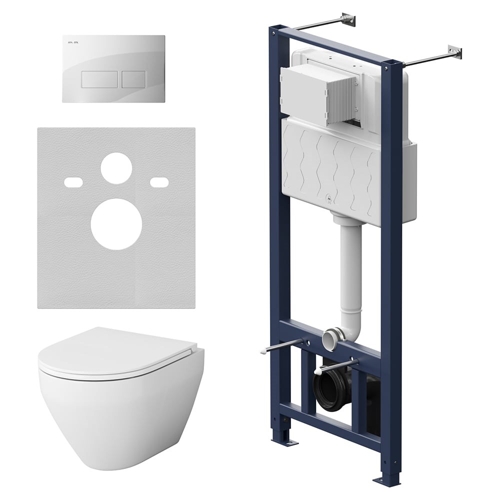 Полностью готовый к установке комплект: система инсталляции с клавишей подвесной унитаз сиденьем. Не разборная рама из стального профиля выдерживает нагрузку до 400 кг. Полностью изолированный бачок с качественной двухрежимной смывной арматурой - комфортное использование благодаря низкому уровню шума - менее 20 дБ. Укомплектован пневматической клавишей в белом цвете. В комплекте все необходимые патрубки и крепления, а также прокладка между унитазом и стеной - звукоизоляция. Выверенный геометрический дизайн унитаза Spirit V2.0 - идеально ровные поверхности с четкими гранями - отмечен премиями iF Design и Good Design. FlashClean - новое поколение безободковых унитазов без использования пластика: 100% гигиеничности 0% брызг. Компактное дизайнерское решение: идеально впишется в санузел любого размера благодаря проекции 49 см. Полностью скрытые крепления и скрытый фановый выход обеспечат эстетическую чистоту дизайна и лёгкость в уходе за керамикой. В комплекте быстросъемное сиденье из дюропласта с механизмом плавного закрывания. Материал сиденья дюропласт устойчивый к появлению царапин в сочетании с креплениями из нержавеющей гарантируют долговечность сиденья. Механизм плавного опускания рассчитанный на 100 000 закрываний и быстрого снятия - комфорт в использовании и легкость в уходе за сиденьем и керамикой.