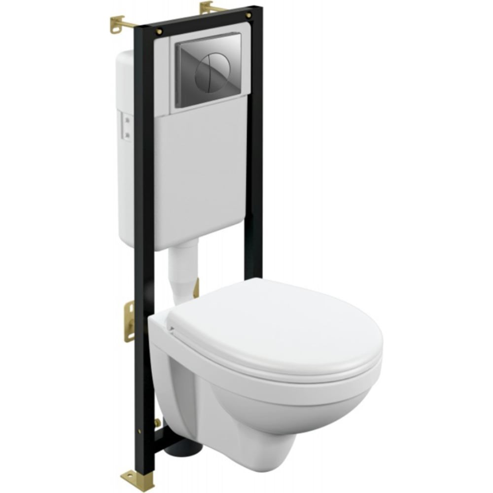 Комплект NATURE Clean On с антибактериальным сиденьем из дюропласта с функцией плавного закрывания и легкосъемом, с инсталляцией BLACK и пластиковой кнопкой смыва LEON пластик хром глянцевый.
