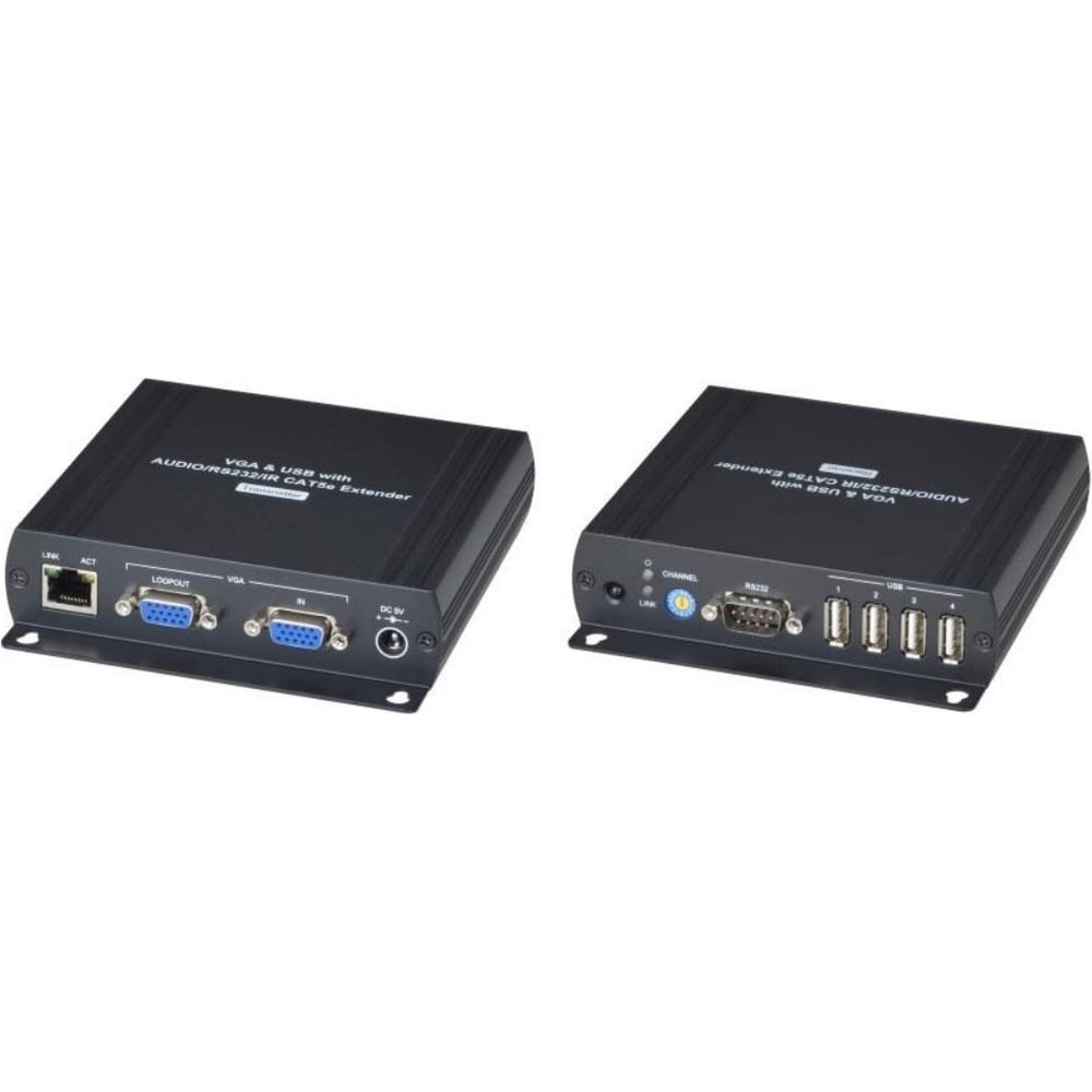 Комплект для передачи VGA, 4xUSB 2.0, RS232, Стерео Аудио и ИК-управление на расстояние до 120м(CAT5e)/140м(CAT6). При использовании повторителя SR01 (через каждые 100м) расстояние передачи неограниченно. Разрешение до 1920х1200, скорость передачи данных до 850Мбит/с (High Speed). Можно подключать 1 передатчик и несколько приёмников через гигабитный коммутатор. Максимальное количество удалённых приёмников-200. Устройство предназначено для работы с PC и регистраторами на базе ОС Windows/Linux с драйверами для работы USB-хаба. В комплекте БП DC5V(2А)-2шт.Назначение:комплект предназначен для передачи сигналов VGA разрешением до 1920х1200 (60Гц), USB2.0, RS232, стерео аудио и ИК-управления по кабелю витой пары на расстояние до 120 м. (Cat 5e) и до 140 м. (Cat 6). При использовании повторителя SR01 через каждые 100 м. расстояние передачи сигналов не ограничено. В одной сети может быть подключено до 16-и комплектов VKM04, с подключением через управляемый гигабитный сетевой коммутатор с поддержкой IGMP и Jumbo Frame (дополнительные комплекты VKM04, повторитель SR01 и коммутатор приобретаются отдельно). Комплект позволяет подключить VGA-монитор, USB-клавиатуру, USB-«мышь», ИК-управление, RS232 устройство, устройство воспроизведения аудио-сигнала, а также 2 дополнительных USB устройства. Комплект предназначен для работы с компьютерами и регистраторами на базе ОС Windows / Linux с возможностью установки драйверов для USB-хаба.