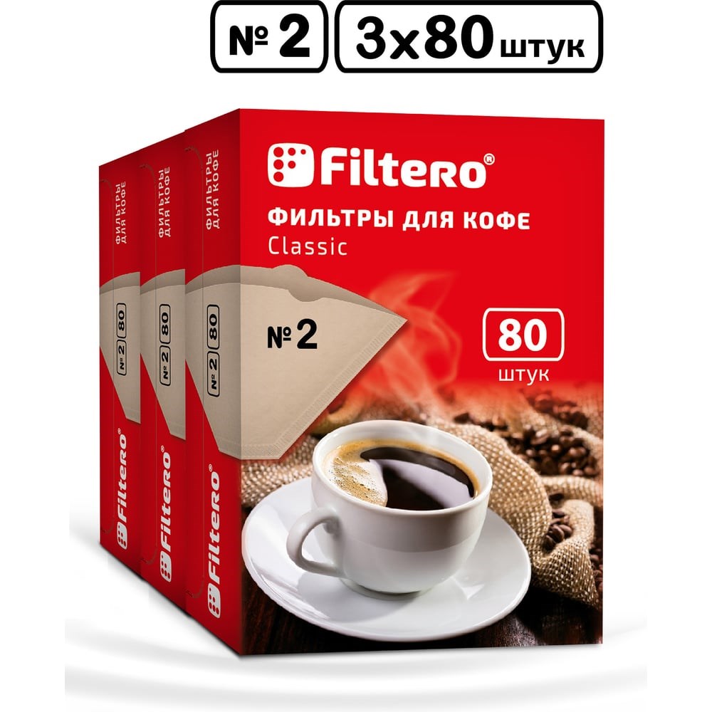 Комплект фильтров для кофе, №2, 240 шт, корич Filtero используется с кофемашинами капельного типа для очистки жидкости от мелких частиц молотого кофе. При этом вкус и цвет напитка не меняются. 1 фильтр рассчитан на 4-8 чашек кофе.