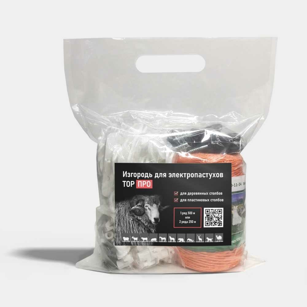 ТОР ВОХ - универсальный комплект изгороди к электропастуху ТОР ПРО. Универсальный комплект для установки электроизгороди рассчитан на 500 м изгороди в 1 ряд и 250 м в два ряда. Преимущество ТОР ВОХ в том, что не нужно заботиться о подборе комплектующих, все необходимые детали уже находятся внутри набора. В набор входят: шнур 500 м, соединители Duplex - 4 шт, изоляторы для пластиковых стоек - 50 шт, изоляторы для деревянных столбов - 50 шт и универсальные изоляторы (для угловых столбов) - 8 шт. По сравнению с проволокой или металлическим тросом, шнур намного легче, не путается и прост в демонтаже на зиму. Подходит для любых типов столбов как для деревянных, так и для пластиковых. Сделан из прочного проводника, который при соприкосновении с животным выдает электрический заряд, который не вредит животному, а просто его отпугивает. Провод не разрушается от воздействия солнечных лучей и не намокает под дождем, у него яркий цвет, который видно на расстоянии. Соединитель Duplex изготовлен из никелированной стали, что обеспечивает высокую прочность, устойчивость к внешним воздействиям. Конструкция зажима исключает возможность разрыва или выпадения шнура. Изоляторы для арматуры прочно удерживают шнур, благодаря специальной конструкции легко меняют высоту линии. Изоляторы для дерева просто монтируются, т.к. саморезы уже идут в комплекте. Оба набора изоляторов позволяют снимать и надевать шнур или провод не снимая изолятор со стойки.