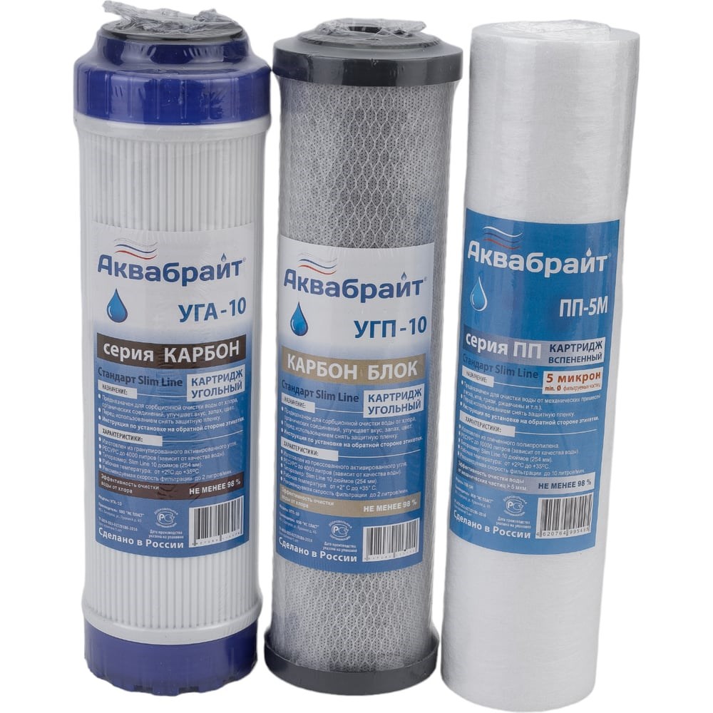 Комплект картриджей для очистки воды Аквабрайт К-1 СТАНДАРТ ПП-5 УГП-10 УГА-10 33651