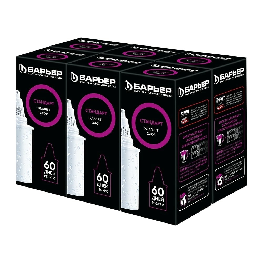 Комплект кассет для фильтров-кувшинов БАРЬЕР Стандарт, 6 шт, удаляет хлор, К046Р18