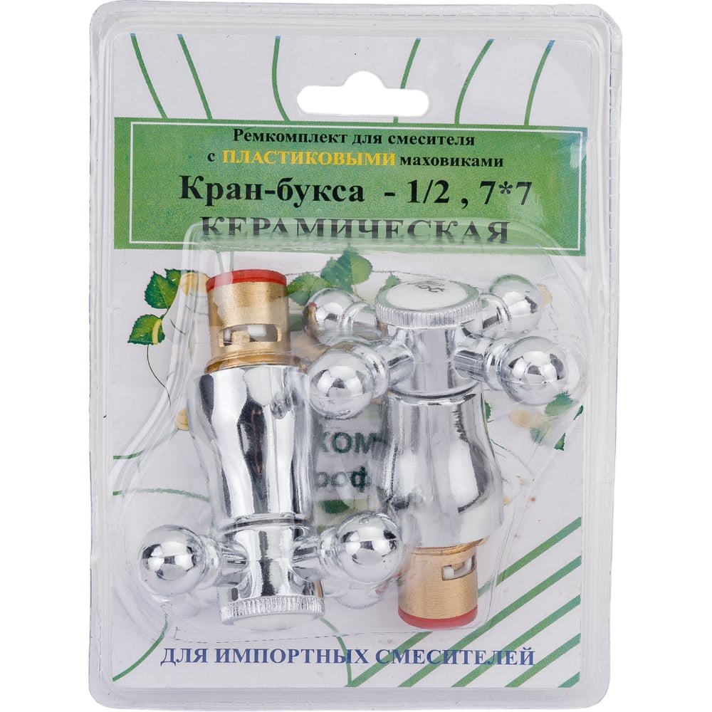 Комплект Профсан ПСМ кран-буксы 1/2" с маховиками Крест, пластик RK-IPK включает в себя две кран-буксы с резьбой 1/2" и два пластиковых маховика типа Крест. Комплект кран-букс с маховиками под квадрат 7х7 подходит для импортных смесителей.