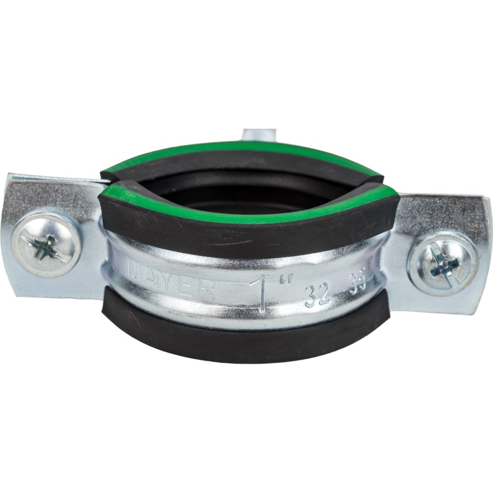 Комплект MAYER сантех. хомут со шпилькой 8x80 и дюбелем д/труб 1" (32-35 мм), гайка М8 14 0100 1/14 0100 18 обладает следующими свойствами: Материал изготовления: для изготовления хомута используется сталь ведущих металлургических комбинатов. Гальваническое покрытие: для производства хомута используется высококачественный состав реагентов для пассивации поверхности, который дает высокую стойкость к коррозии. Толщина оцинковки 8-10 микрон. Усиление конструкции: двойное ребро жесткости дает возможность качественнее приваривать гайку при меньшей площади контакта гайки с поверхностью. Эта технологическая особенность минимизирует отрыв гайки при монтаже и эксплуатации. Резиновая прокладка: резина изготавливается из материала ТЭП, в состав которого входит каучук. Резиновое уплотнение с улучшенными эксплуатационными свойствами обеспечивает надежное сцепление с трубой, улучшая показатели; глушит вибрацию, сохраняет эластичность при температурах от -50°С до +60°С и имеет длительный срок службы. Отличительная особенность - это зеленая полоса по контуру. Соединительные винты: винт сантехнического хомута имеет крестообразный и прямой шлиц, который упрощает монтажные работы. Широкая головка винта предотвращает разрыв отверстия. Увеличено количество витков резьбы в отверстиях под винты, что дает большую надежность соединения и снижает износ резьбовой поверхности хомутов, тем самым увеличивая их срок службы. Контроль качества: сварное соединение «гайка М8 (М10)» проходит систематическое тестирование хомута на разрыв с гайкой на специальном тест-станке. Нагрузка на отрыв гайки выше рекомендованной нагрузки.