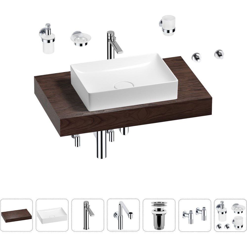 Комплексное предложение по специальной цене от Wellsee. СТОЛЕШНИЦА Основа столешницы из дерева Genuine Tree – высококачественная импрегнированная плита МДФ, пропитанная специальным составом для усиления стойкости материала и максимальной защиты от влаги, перепадов температур, грибка и плесени. Максимальная влагостойкость достигается за счет укрепления торцов изделия массивом дерева. Далее поверхность столешницы покрывается натуральным шпоном и дополнительно обрабатывается бейцем, что позволяет получать уникальную для каждого покупателя текстуру и выразительный цвет. РАКОВИНА Накладная раковина Pure BY Wellsee с первого взгляда покоряет своей чистотой и безукоризненностью линий. Изысканные формы и внешняя хрупкость конструкции смягчат самый неординарный интерьер ванной комнаты. Наличие керамического клапана на слив деликатно подчеркнет эстетику умывальной зоны. СМЕСИТЕЛЬ Надежный латунный смеситель с испанским картриджем 35 мм обеспечивает высокую точность управления напором и температурой воды, благодаря которому наслаждаться плавным скольжением ручки и мягким ходом смесителя можно более 10 лет. Регулируемый аэратор Neoperl с технологией AIRflow² позволяет скорректировать направление потока, уменьшает разбрызгивание и приглушает шум воды. ВАННАЯ КОМНАТА В СТИЛЕ WELLSEE Завершить современный интерьер ванной комнаты можно с помощью сифона, донного клапана, угловых вентилей (2 шт), набора аксессуаров (5 шт) и элегантными зеркалами 7 Rays' Spectrum.