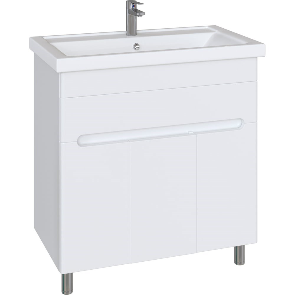 Внимание! Тумба поставляется в разобранном виде, требуется сборка. Комплект упакован в пятислойный гофрокартон, дополнительно защищен деревянной обрешёткой. Тумба напольная SanStar Модена 80 с раковиной Фостер 80 (комплект) для ванной комнаты белая производится на российском заводе, оснащенном высокотехнологичным европейским оборудованием под брендом SanStar. Отличительной особенностью является оптимальное соотношение качества и цены. А линейка мебели Модена внесет в Вашу ванную комнату неповторимый дизайн и обновление. Дополнительно к тумбе возможно приобрести полный комплект мебели Модена(зеркало, зеркальный шкаф, шкаф-пенал). Основные характеристики товара: Ширина 81,2 см, Высота 75 см, Высота с ножками 85 см, Глубина 45,5 см, Толщина материала 1,6 см, Вес 49 кг. Цвет мебели белый. Для изготовления корпуса используется влагостойкий ЛДСП - покрытие матовое, фасад изготавливается из МДФ. Для покрытия фасада изделия используется высококачественная глянцевая пленка увеличенной толщины. Фурнитура - хром. 1 выдвижной ящик с шариковыми направляющими без доводчиков Количество полок, выполненных из ЛДСП, без учета корпуса мебели - 1 съемная. Три дверцы с доводчиками Boyard, две из которых открывается вправо, а третья влево. В комплект входит 4 ножки - 2 передние хром, 2 задние пластик. Гарантия 3 года. В набор входит раковина. Материал - фарфор. Фостер 80. Размеры изделия могут отличаться +/-1 см в связи со спецификой производства. Пожалуйста, учитывайте это при подборе.