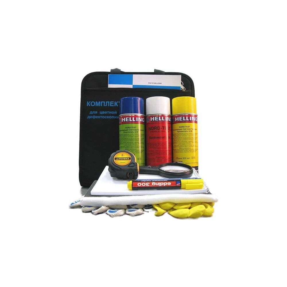 Комплект для капиллярной дефектоскопии предназначен для выявления поверхностных и сквозных дефектов в основных материалах и сварных соединениях с шириной раскрытия не менее 1 мкм (2 класс чувствительности). Набор для капиллярной дефектоскопии предназначен для выявления поверхностных и сквозных дефектов в основных материалах и сварных соединениях по 2 классу чувствительности (ширина раскрытия ≥ 1 мкм). Данный набор оптимален для комплектации аттестующихся лабораторий НК и соответствует требованиям к оснащению по цветной капиллярной дефектоскопии. Набор укомплектован аэрозольными баллонами серии Nord-Test компании Неlling имеющими заключения ведущих материаловедческих организаций о возможности применения по I-III классам чувствительности при температуре от -5° до +50°C. Комплектация набора соответствует требованиям: СДАНК-01-2020 Правила аттестации и основные требования к лабораториям неразрушающего контроля. РД 13-06-2006 Методические рекомендации о порядке проведения капиллярного контроля.