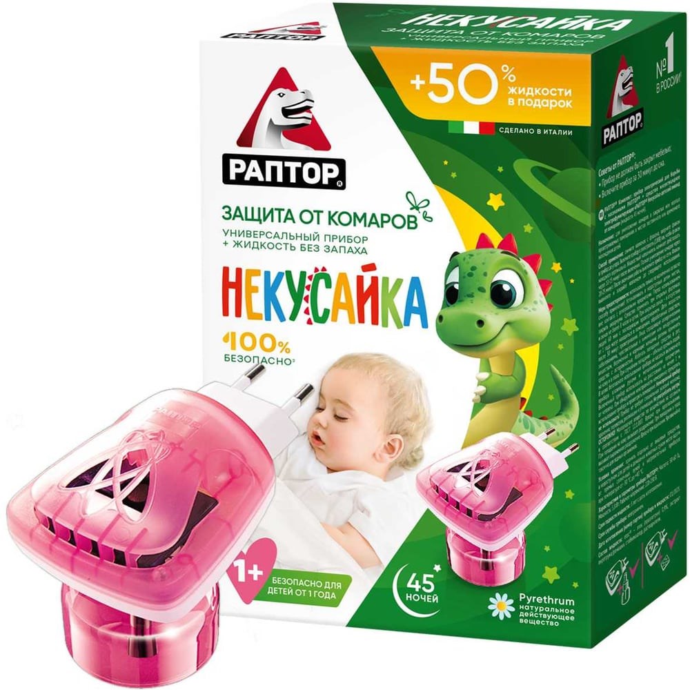 Комплект от комаров РАПТОР НЕКУСАЙКА 30 ночей, прибор + жидкость 12643 Gk9620 используется в помещении. Флакон выполнен из прозрачного не бьющегося материала. В состав входит натуральный экстракт особого вида ромашки.