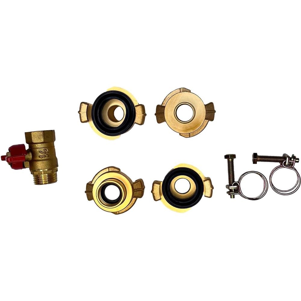Комплект переходников для быстросъемного соединения применяется в большинстве воздушных и водяных соединений. Используется для быстросъемного подключения штукатурной лопаты со шлангом высокого давления и воздушным краном. Кран используется для самостоятельного включения/отключения и регулировки давления в шланге штукатурной лопаты и соединения с компрессором, выходное отверстие которого М1/4". Комплект служит для быстросъемного соединения лопаты со шлангом и компрессором 1/2 дюйма под шланг 16 мм внутр. диам.