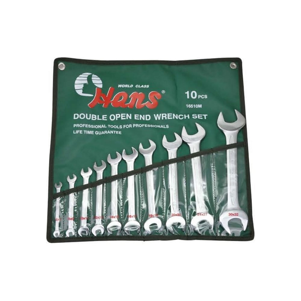 Комплект рожковых ключей Hans 6х7-30х32мм 10шт 16510M предназначен для монтажа и демонтажа крепежа различного размера. Каждый ключ оснащен двумя рожковыми профилями. Корпус инструмента изготовлен из хромованадиевой стали. Чехол облегчает хранение комплекта.