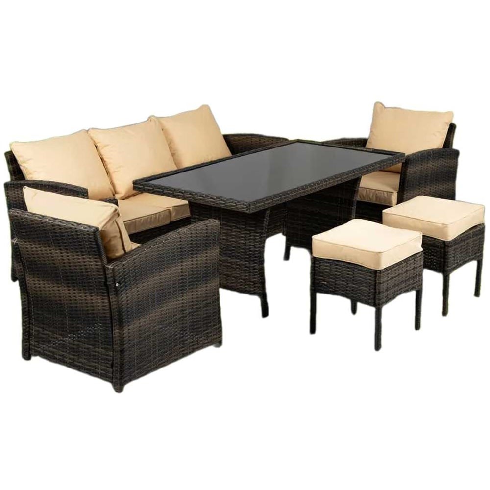 Комплект садовой мебели Зоя из искусственного ротанга станет отличным выбором для вашего сада или дачи. Этот набор садовой мебели сочетает в себе стильный дизайн и высокую функциональность, что позволяет создать уютное пространство для отдыха на свежем воздухе. Изготовленный из качественного искусственного ротанга на прочном металлическом каркасе, комплект отличается долговечностью и стойкостью к внешним воздействиям.Вместительный диван и кресло для сада обеспечат комфортное место для отдыха с друзьями и семьей. Градиентный дизайн придаёт мебели особый шарм, а легкость в уходе позволяет оставлять её на открытом воздухе в любое время года. Комплект идеально подходит для обустройства террас, балконов или просто для создания уютного уголка в саду.Этот набор подарит вам приятные моменты в кругу близких, устраивая вечерние посиделки или утренние кофе-брейки на свежем воздухе. Мебель из ротанга гармонично впишется в любой ландшафт, добавляя нотку уюта и эстетики.Выбирая Комплект садовой мебели Зоя, вы получаете возможность наслаждаться комфортом и стилем, не переживая при этом о чрезмерном уходе за мебелью. Это идеальное решение для создания пространства для отдыха, которое будет радовать вас в течение многих сезонов.Размеры:Диван - 175х70х72 смКресло - 70х70х72 смПуф - 38х39.5х39 смСтол - 141х75х68 смГлубина посадки - 59 смВысота посадки - 32 смШирина посадочного места дивана - 160 смШирина посадочного места кресла - 53 см