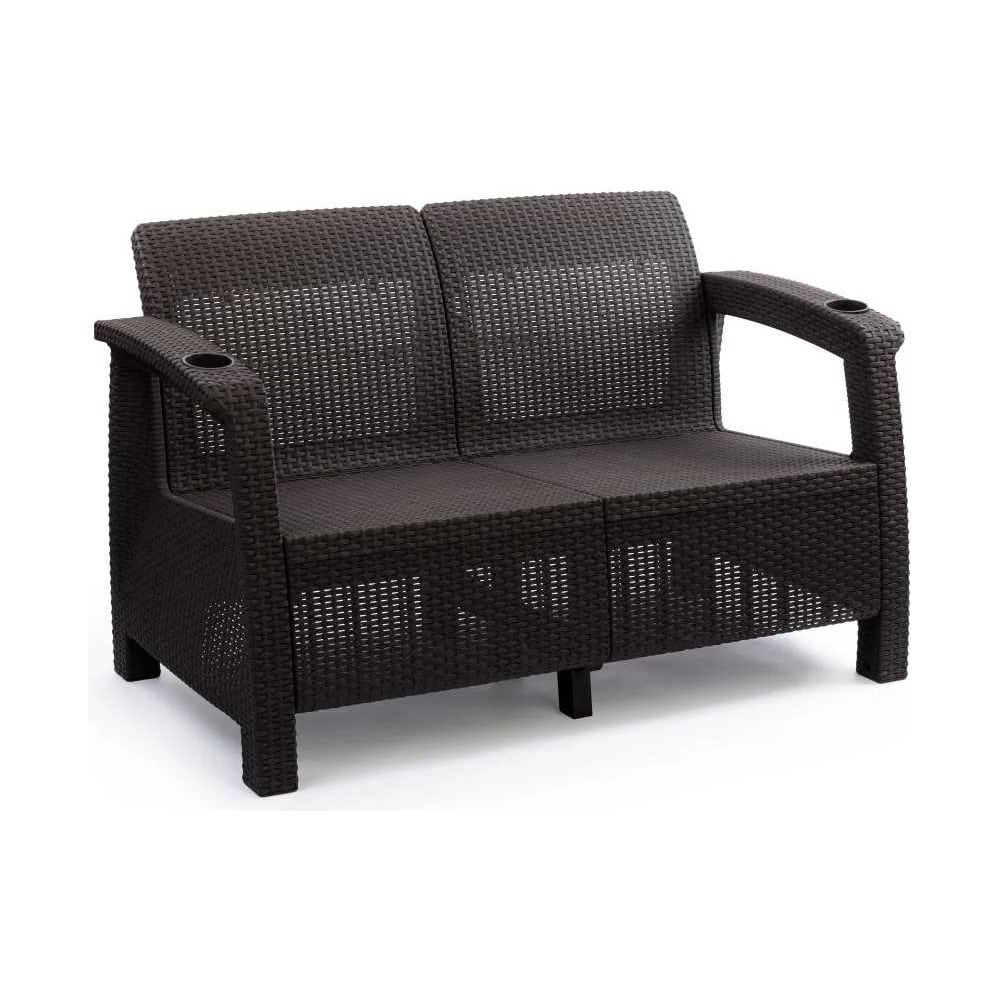 Фазенда-2 (2-х местный диван + кофейный столик), искусственный ротанг, мокко, без подушек. Особенности: Эргономичный дизайн Сделано из прочного пластика Неметаллическая рама - не ржавеет и не гниет Благодаря стойкому к высоким температурам полипропилену, цвета не выгорают и не бледнеет Легко мыть и удобно хранить Встроенные подстаканники