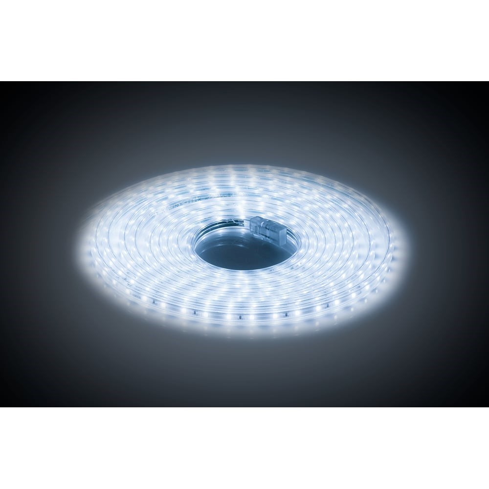Комплект светодиодной ленты Apeyron с аксессуарами работает от 220 В.Благодаря светодиодам smd 3528 излучающим световой поток равный 300 лм/м лента является прекрасным решением для воплощения в жизнь такого элемента декора, как декоративная подсветка в нежилых помещениях, беседках и уличных конструкциях.Светодиодная лента подойдет для декорирования ниш в стенах, многоуровневых потолков и даже мебели. По сравнению с лампами накаливания светодиодная лента эквивалентна лампам мощностью 30 Вт.Данная модель светодиодной ленты обладает холодным белым цветом свечения с цветовой температурой 6400 К. Также в состав комплекта входит шнур питания с коннектором для подключения к светодиодной ленте 220 В.Степень защиты светодиодной ленты соответствует стандарту IP65, что позволяет использование не только во влажных помещениях, но и на улице.Отрезать светодиодную ленту можно в специально отмеченных местах, которые располагаются через каждый 1 метр.Компактные размеры светодиодной ленты с шириной 9 мм и основанием из гибкой, двухслойной, медной подложки дают огромное преимущество при создании любых дизайнерских фантазий.Данный комплект содержит в своем составе заглушку, которая уже установлена с одной из сторон светодиодной ленты и пластиковые П-образные крепежи для закрепления ленты на поверхности.