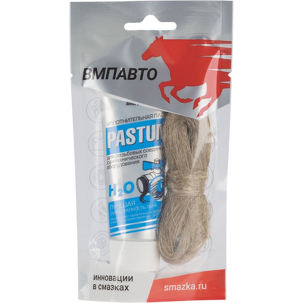 Комплект ВМПАВТО со льном: Pastum H2O 70г туба, лен 15г 8109 обеспечивает герметичность соединений, облегчает монтаж системы, защищает от коррозии металла, предотвращает окисление льна. Паста для уплотнения резьбовых соединений: Обеспечивает герметичность соединений Облегчает монтаж системы Защищает от коррозии металла Предотвращает окисление льна