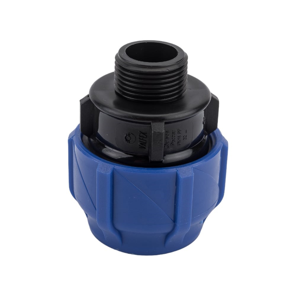 Компрессионная соединительная муфта VALFEX ПНД, c наружной резьбой, 32x3/4" 121001132034 выполнена из полипропилена и применяется для соединения полиэтиленовых труб кольцевого сечения по ГОСТ 18599 и/или ГОСТ 32415-2013. Предназначена для транспортирования воды с температурой до 40° С и максимальным рабочим давлением 1,6 МПа в системах хозяйственно-питьевого водоснабжения, а также для транспортирования других жидких сред, к которым материал фитинга и его уплотнительных элементов химически стоек. Используется для монтажа в системах питьевого водоснабжения и орошения. Рабочая температура - 20°С.