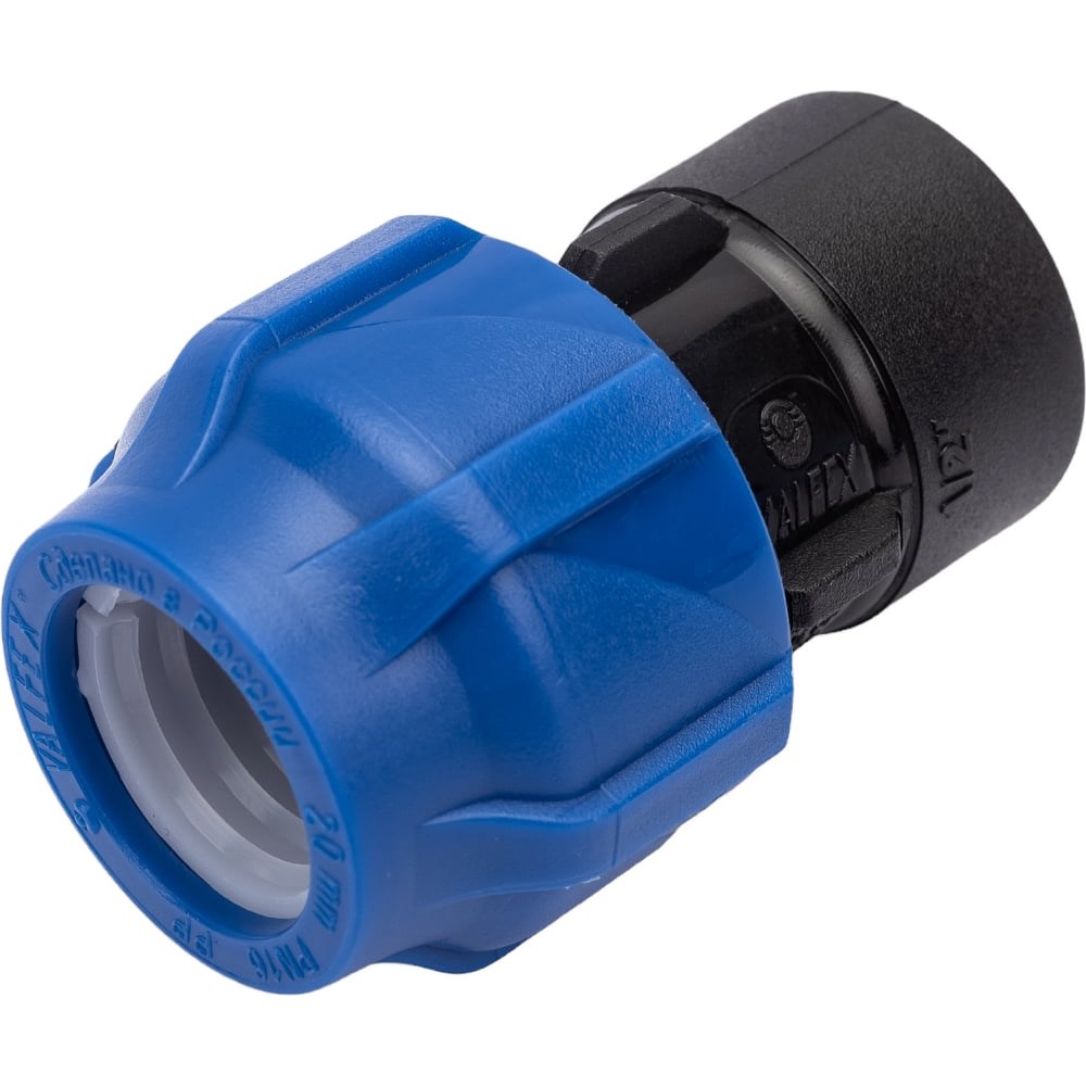 Компрессионная соединительная муфта VALFEX ПНД, c внутренней резьбой, 20x1/2" 121001220012 выполнена из полипропилена и применяется для соединения полиэтиленовых труб кольцевого сечения по ГОСТ 18599 и/или ГОСТ 32415-2013. Предназначена для транспортирования воды с температурой до 40° С и максимальным рабочим давлением 1,6 МПа в системах хозяйственно-питьевого водоснабжения, а также для транспортирования других жидких сред, к которым материал фитинга и его уплотнительных элементов химически стоек. Используется для монтажа в системах питьевого водоснабжения и орошения. Рабочая температура - 20°С.