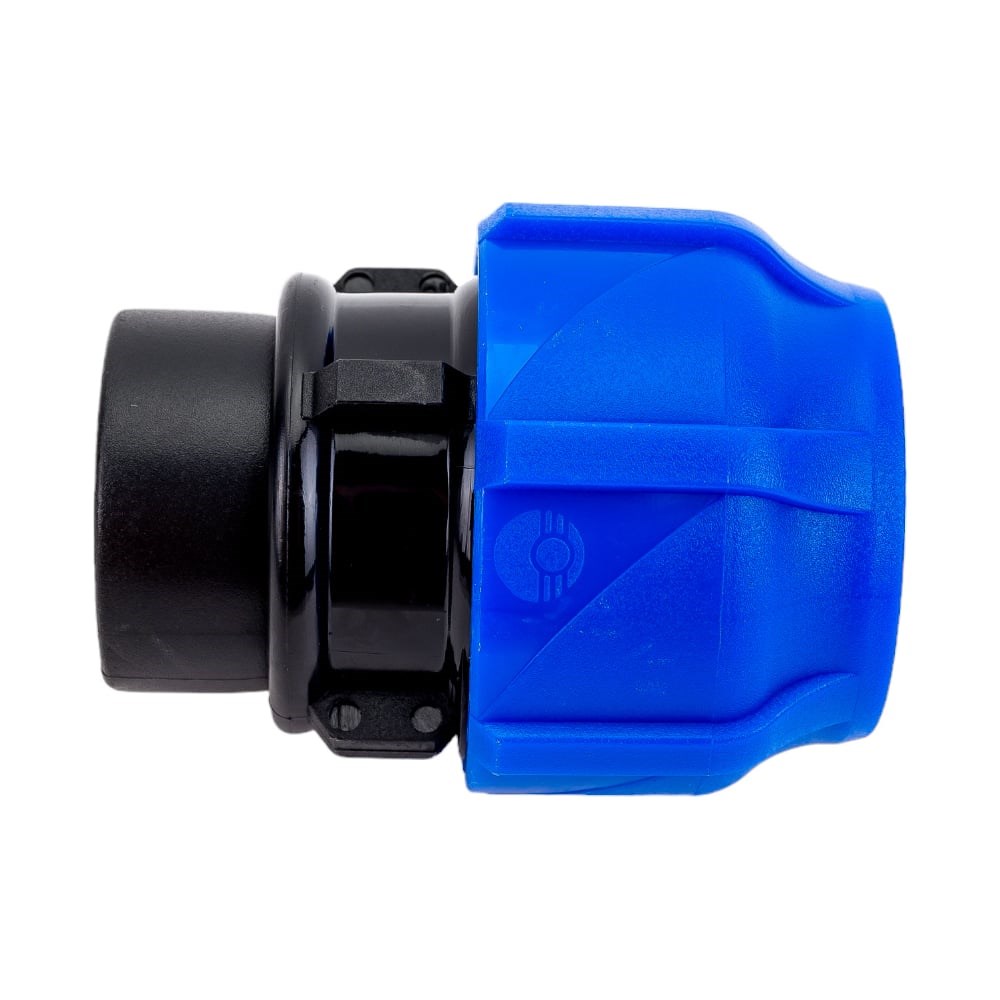 Компрессионная соединительная муфта VALFEX ПНД, c внутренней резьбой, 32x3/4" 121001232034 выполнена из полипропилена и применяется для соединения полиэтиленовых труб кольцевого сечения по ГОСТ 18599 и/или ГОСТ 32415-2013. Предназначена для транспортирования воды с температурой до 40° С и максимальным рабочим давлением 1,6 МПа в системах хозяйственно-питьевого водоснабжения, а также для транспортирования других жидких сред, к которым материал фитинга и его уплотнительных элементов химически стоек. Используется для монтажа в системах питьевого водоснабжения и орошения. Рабочая температура - 20°С.