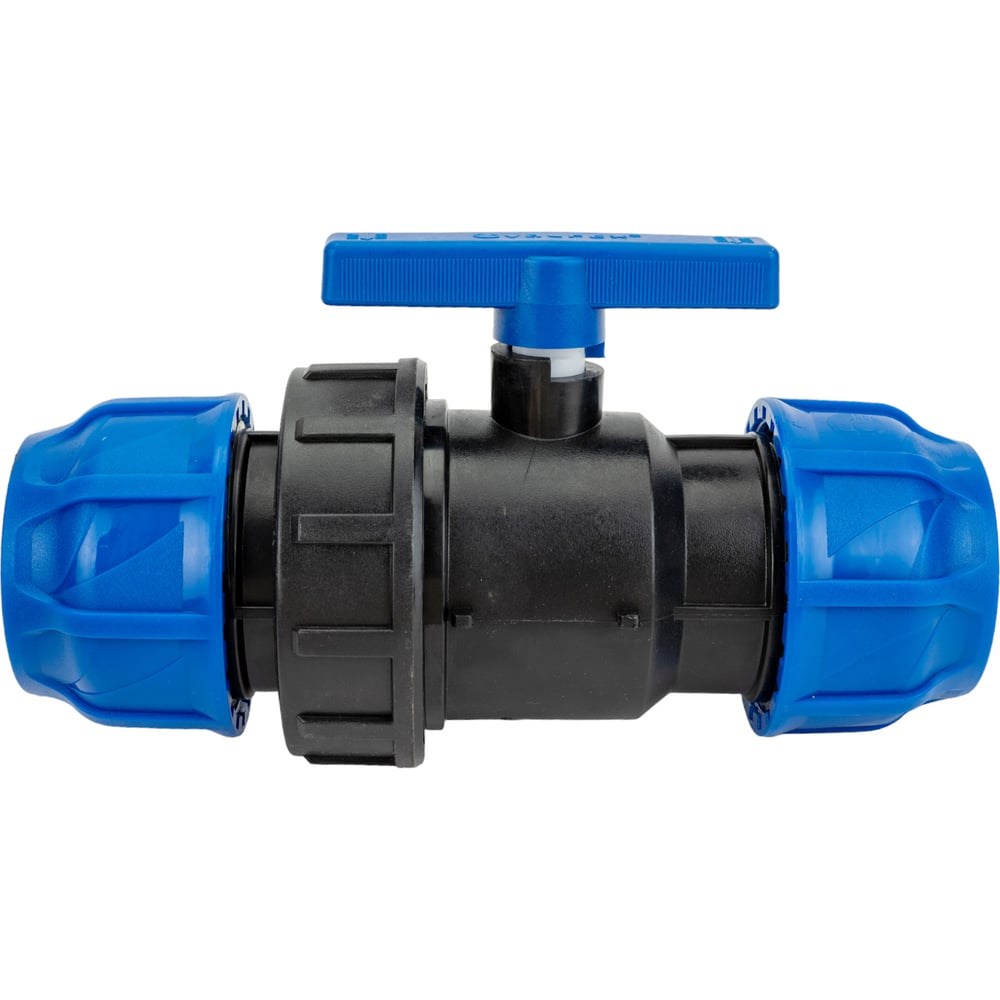Шаровой кран VALFEX ПНД компрессионный цанга - цанга разборный 63x63 121001236363 предназначен для перекрытия потока транспортируемой жидкости. Применяется на трубопроводах холодного водоснабжения с температурой не более 40°С. Благодаря своей комбинации цанга-цанга позволяет быстро производить установку в любом месте трубопровода из полиэтиленовых труб.