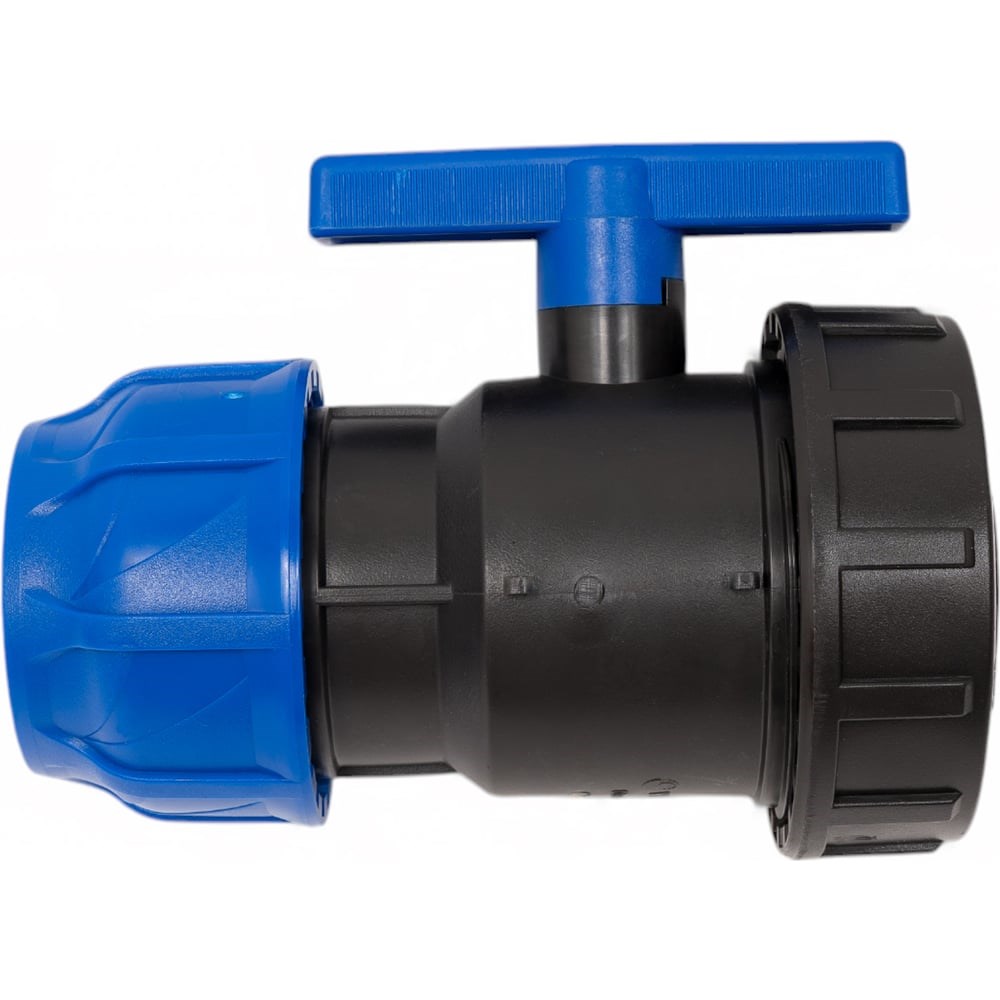 Шаровой кран VALFEX ПНД компрессионный цанга - внутренняя резьба, разборный 63x1 1/2" 1210012563112 предназначен для перекрытия потока транспортируемой жидкости. Применяется на трубопроводах холодного водоснабжения с температурой не более 40°С. Кран имеет с одной стороны внутреннюю резьбу, равную стандартному размеру стальных резьб, а с другой цанговый зажим, что позволяет использовать кран шаровой компрессионный как переходной элемент трубопровода с возможностью регулирования потока воды.