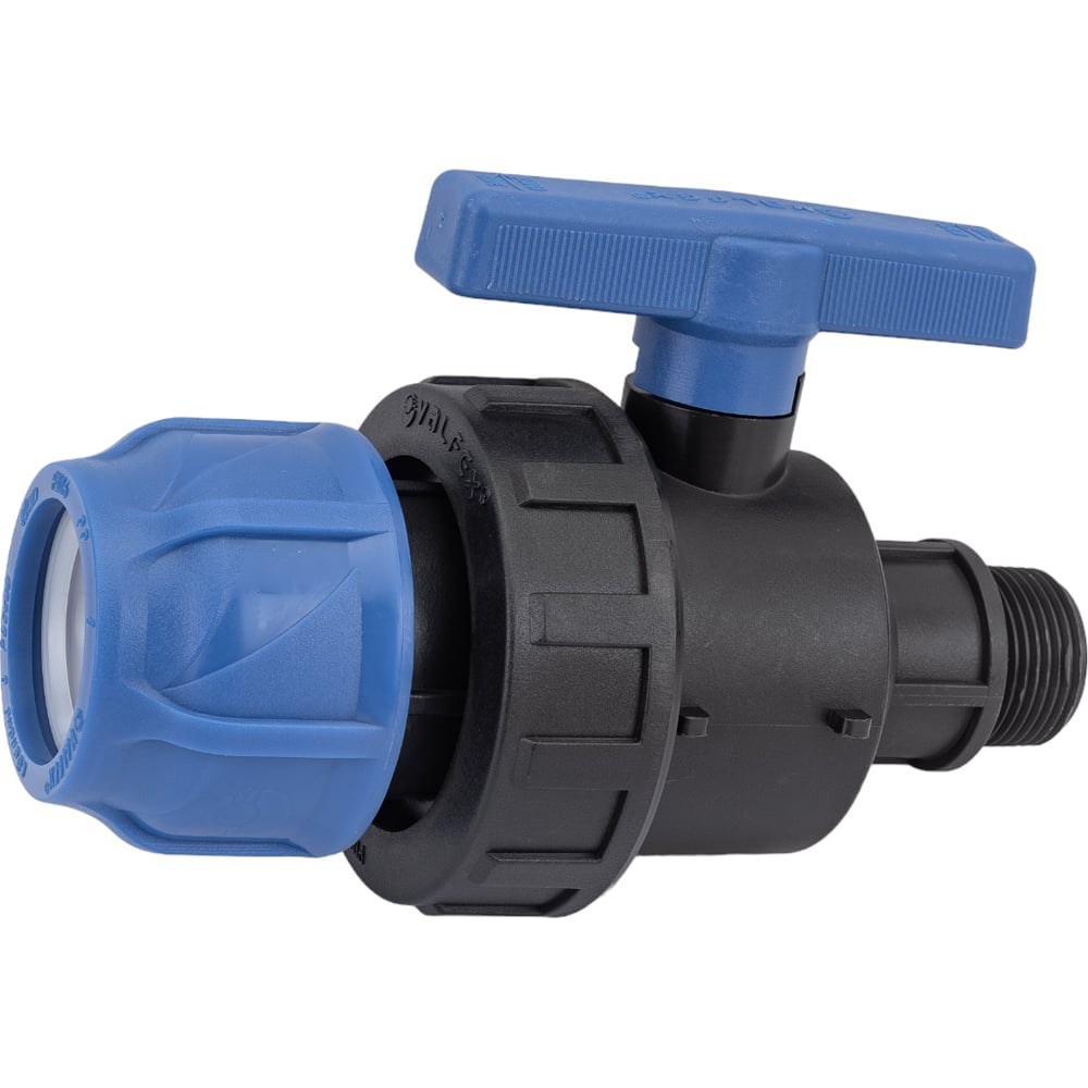 Шаровой кран VALFEX ПНД компрессионный цанга - наружная резьба, разборный 40x1" 1210012640100 предназначен для перекрытия потока транспортируемой жидкости. Применяется на трубопроводах холодного водоснабжения с температурой не более 40°С. Кран имеет с одной стороны наружную резьбу, равную стандартному размеру стальных резьб, а с другой цанговый зажим, что позволяет использовать кран шаровой компрессионный как переходной элемент трубопровода с возможностью регулирования потока воды.