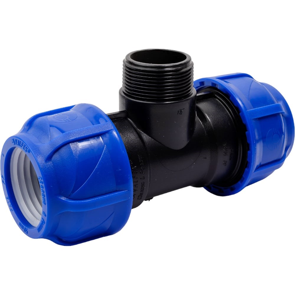 Компрессионный переходной тройник VALFEX ПНД, с наружной резьбой, 50-1 1/2"-50 1210025011250 выполнен из полипропилена и применяется для соединения полиэтиленовых труб кольцевого сечения по ГОСТ 18599 и/или ГОСТ 32415-2013. Предназначен для транспортирования воды с температурой до 40° С и максимальным рабочим давлением 1,6 МПа в системах хозяйственно-питьевого водоснабжения, а также для транспортирования других жидких сред, к которым материал фитинга и его уплотнительных элементов химически стоек. Фитинг предназначен для соединения трех отрезков трубы, один из которых устанавливается перпендикулярно двум другим. Переходной тройник используется для соединения труб одного диаметра с трубой другого меньшего диаметра. Рабочая температура - 20°С.