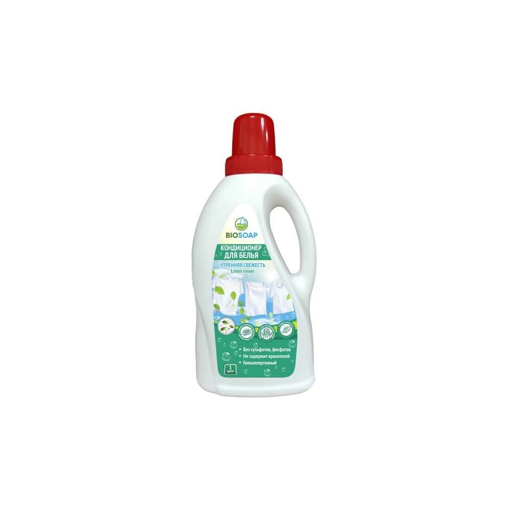 Кондиционер для белья BIOSOAP Linen rinser Утренняя свежесть, 1 л 9130521 подходит для всех типов ткани на основе компонентов растительного происхождения. Облегчает уход за вещами. Удаляет остатки стирального средства из ткани. Не требует предварительного разбавления водой. Без сульфатов, фосфатов Не содержит красителей Гипоаллергенный Придает мягкость и антистатический эффект Облегчает глажку Оставляет приятный аромат Безопасно для окружающей среды