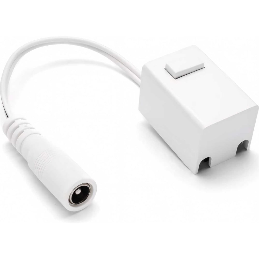 Коннектор со встроенным выключателем для подключения светодиодных модульных светильников к блоку питания снабжен проводом длиной 150 мм с коннектором 5,5х2,5 мм типа "мама", позволяет осуществлять подключение изделия в считанные мгновения и не требует дополнительного инструмента. Изделие легко монтируется на токоведущую шину и также легко подключается к блоку питания с соответствующим разъемом. В дополнение к этому на коннекторе размещена кнопка, с помощью которой можно включить или выключить светильник.