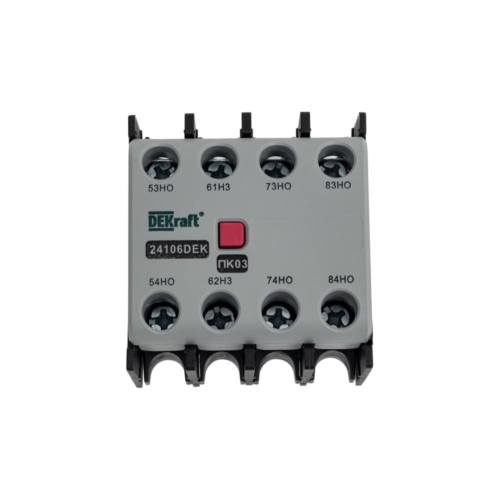 Дополнительные характеристики для контактной приставки Dekraft лицевой установки ПК03-02-31 24106DEK: Используется с контакторами серий КМ-102 и КМ-103. Установка в пазы. Увеличивает количество вспомогательных контактов контактора. Обеспечивает надежная связь между контактной приставкой и пускателем. Механическая износостойкость - не менее 1,6 млн. циклов. ГОСТ 50030.5.1-2005 (МЭК 60947-5-1:2003). Лицевая установка.